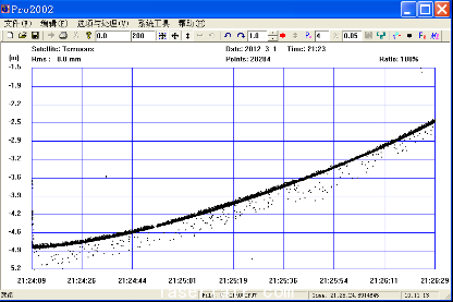 長(zhǎng)春觀測(cè)站測(cè)距系統(tǒng)采用國(guó)科激光器三個(gè)月期間,共獲得觀測(cè)數(shù)據(jù)超過(guò)三千圈,地靶精度為5mm左右,數(shù)據(jù)單次測(cè)距精度為10mm左右。圖3是數(shù)據(jù)處理界面圖,表二是使用國(guó)科激光器近三個(gè)月獲得的觀測(cè)數(shù)據(jù)量。