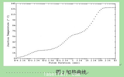 在加熱電流IH 作用下,監(jiān)視LED的結(jié)溫上升過(guò)程,獲取加熱曲線也很有意義,圖2所示為典型的加熱曲線,它不僅能夠判斷LED是否達(dá)到熱平衡,而且對(duì)于LED的結(jié)構(gòu)和散熱能力分析有具有參考作用。