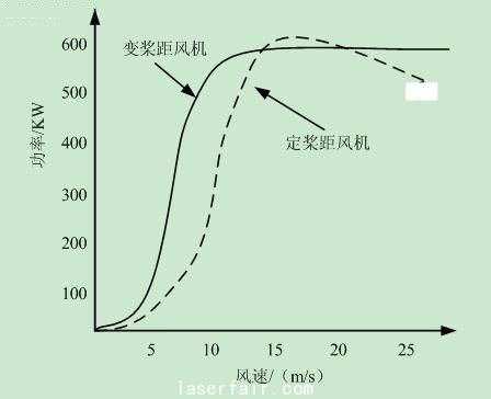圖2 變槳距和定槳距風(fēng)力機(jī)的功率曲線