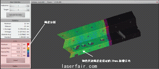 在機(jī)械配件掃描應(yīng)用中,另外一種需求是對掃描件的三維機(jī)械尺寸進(jìn)行分析和檢測,以便進(jìn)行產(chǎn)品質(zhì)量控制。RASCO利用HDI ADVANCE的偏差分析功能,與Geomagic配合可以提供精準(zhǔn)的數(shù)字、圖形數(shù)據(jù)比較報(bào)告,允許配件制造商客戶在產(chǎn)品大批量生產(chǎn)之前就發(fā)現(xiàn)問題,節(jié)約成本和時(shí)間。