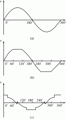(a)正弦波(b)基波加三次諧波(c)帶有死區(qū)的基波加三次諧波