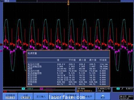 測量驅(qū)動電源的輸入功率、功率因數(shù)和諧波有很多方法,使用具有電源分析功能的泰克示波器產(chǎn)品可以輕松實(shí)現(xiàn)這些電能質(zhì)量測量。使用一路通道測量輸入電壓、一路通道測量輸入電流,配合示波器內(nèi)置的PWR電源分析軟件,所有的電能質(zhì)量相關(guān)參數(shù)可以直接顯示在屏幕中。