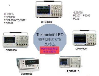 圖1:泰克專門針對LED照明應(yīng)用提供各種測試解決方案組合供客戶選擇。