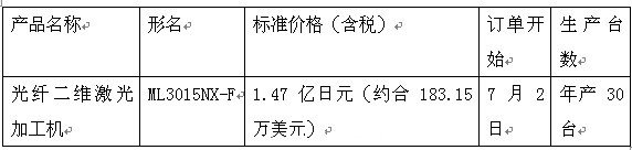 據(jù)日本媒體報道,三菱電機將于7月2日發(fā)售光纖二維激光加工機“ML3015NX-F”,該產(chǎn)品搭載了能實現(xiàn)高生產(chǎn)率、高效率、高質(zhì)量的光纖激光振蕩器,是激光加工機“MELLASER”的新產(chǎn)品。三菱電機欲借此擴充以碳酸氣體激光加工機為首的激光加工機的產(chǎn)品陣容。