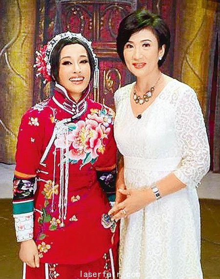 劉曉慶(左)與方念華合照時(shí),還是帶著濃濃舞臺(tái)妝