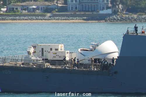 根據(jù)美國(guó)海軍公布的照片,最近在美國(guó)海軍“阿利•伯克”級(jí)導(dǎo)彈驅(qū)逐艦“杜威”號(hào)上,開始進(jìn)行一種中型激光武器的搭載實(shí)驗(yàn)。