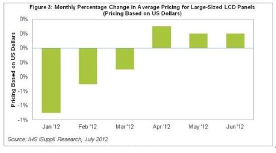 據(jù)IHS iSuppli公司的液晶價(jià)格追蹤報(bào)告,第二季度眾多積極因素幫助驅(qū)動(dòng)大尺寸液晶面板價(jià)格在6月微漲。大尺寸液晶面板用于電視、監(jiān)視器和筆記本電腦之中。