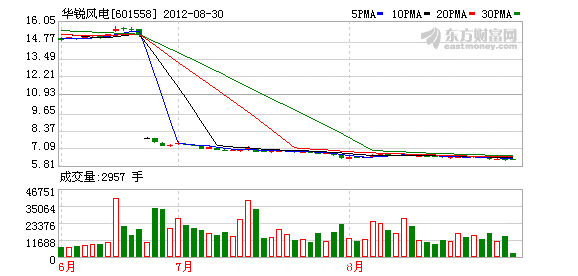 昨日,華銳風(fēng)電公布的2012年半年報(bào)顯示,報(bào)告期內(nèi),公司實(shí)現(xiàn)營業(yè)收入30.86億元,較去年同期下降42.04%;實(shí)現(xiàn)凈利潤2466.89萬元,同比下降96.25%?;久抗墒找?.01元。