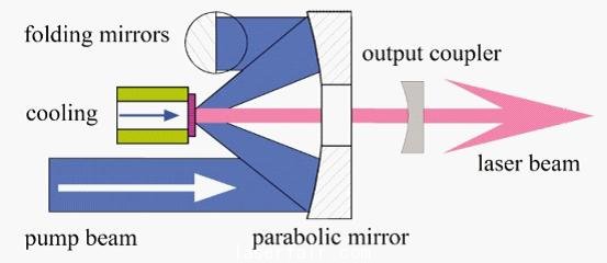 15年前斯圖加特大學(xué)Adolf Giesen博士以及工作團(tuán)隊(duì)發(fā)明了碟片激光器,德國(guó)DG公司和他們合作后,生產(chǎn)各種功率的商業(yè)用途的碟片激光器,功率從幾瓦到幾千瓦。