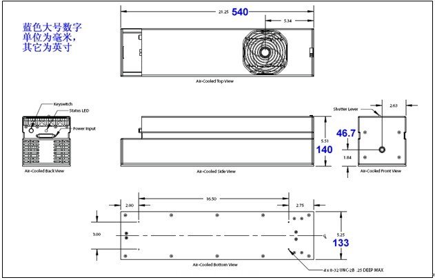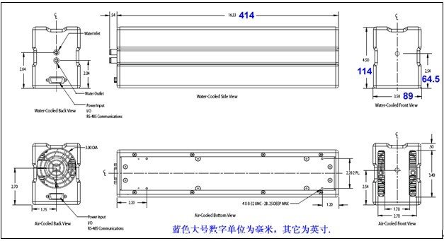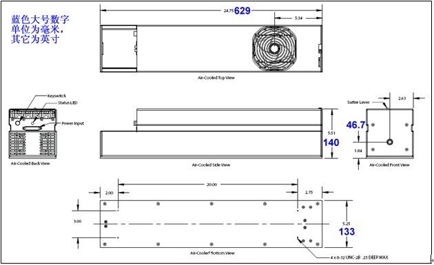 OEM 標(biāo)準(zhǔn)型100W 激光器外形尺寸: