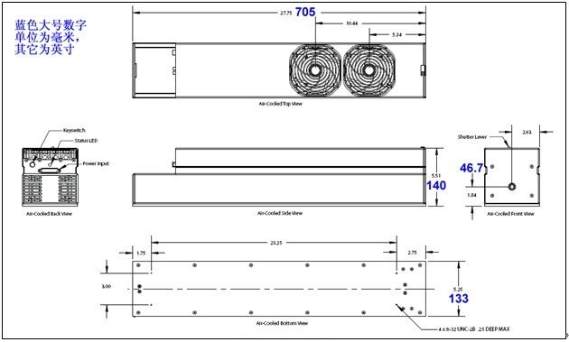 ※OEM標(biāo)準(zhǔn)型有風(fēng)冷和水冷兩種形式,包含鋁制外殼和風(fēng)扇,特別適合需要將激光器外露的使用場合。