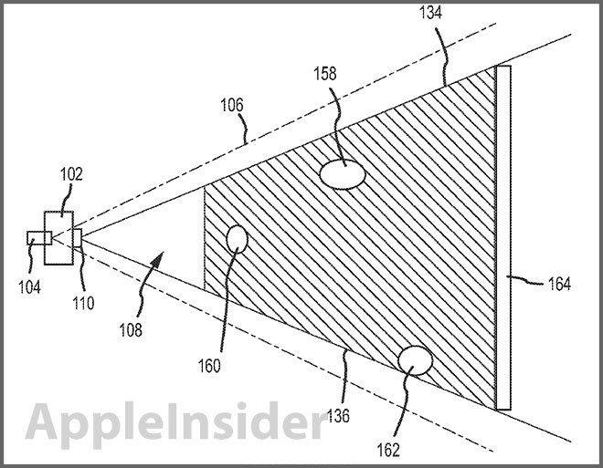 蘋果最初于2011年7月申請名為“深度識別設備和系統(tǒng)”的專利,充分利用激光器的精度和現(xiàn)代圖像感應器測量物體距離和深度。
