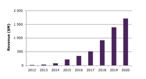 有機(jī)發(fā)光二極管(OLED)在2009年僅有5億美元市場規(guī)模,但后續(xù)幾年卻不斷吸引廠商投入資金發(fā)展,著實(shí)耐人尋味。事實(shí)上,OLED之所以掀起開發(fā)熱潮,部分原因是可用在手機(jī)屏幕上,如三星(Samsung)Galaxy系列產(chǎn)品;手機(jī)屏幕的導(dǎo)入助長OLED營收于2011年攀升至30億美元,并于2012年達(dá)到60億美元。