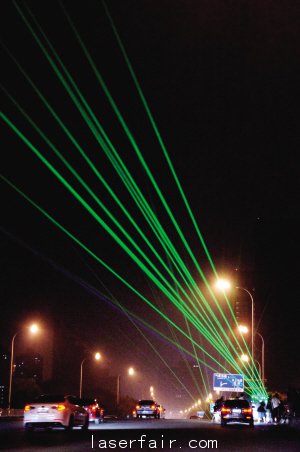 前天22:00左右,記者來到快速路中石油橋附近,2個開著車兜售激光筆的商販在路邊不斷開關著手里的激光筆。據(jù)商販介紹,激光筆功率從5毫瓦到200毫瓦都有,根據(jù)功率不同,最遠的照射距離可達到3000米左右。記者看到,2位商販車里裝著上百只激光筆,二三十束光束照向“水滴”和快速路,遇到路過市民上前圍觀,2位商販就拿出一支筆隨意朝對面的快速路和“水滴”照射測試。“橋下光太晃眼,橋上有彎道和岔路口,到這里不敢開快了,也就二三十邁車。”一位路過司機面對激光的干擾對記者說。