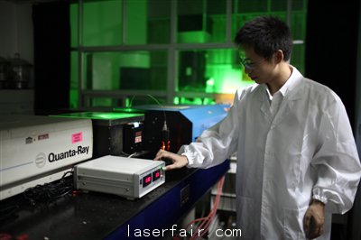 照射在中科院武漢物理與數(shù)學(xué)研究所實(shí)驗(yàn)室上空中的激光