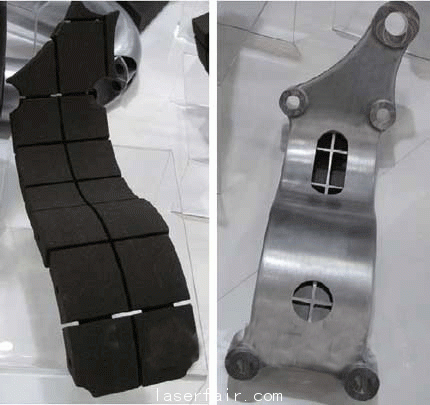 圖2:利用3D打印機制造的沙模(左)和使用這種沙模制造的鑄件(右)