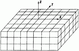 運動學模型的選擇是決定機器人絕對精度的重要因素之一。它必須正確地對影響機器人末端位姿的各種因素建模。增加運動學模型的復(fù)雜度有助于提高機器人的絕對精度,但是也要付出降低機器人性能中其它特性的代價,因此建模時要綜合考慮各方面的因素。激光加工機器人為框架結(jié)構(gòu)的機器人,我們認為采用網(wǎng)格化的誤差補償方法較合適,該方法可以補償機器人幾何誤差和某些非幾何誤差。根據(jù)機器人補償精度的要求,可以把激光加工機器人工作空間劃分為網(wǎng)格如圖4所示。根據(jù)不同的補償精度的要求,網(wǎng)格的疏密程度可以不同。