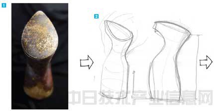 2 澄川根據(jù)1的試制品重新繪制的草稿之一。設(shè)計方針是實現(xiàn)生動的外形與易用的尺寸