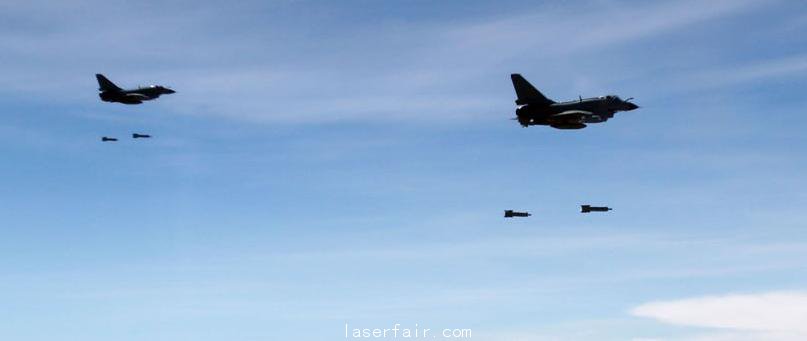 殲-10戰(zhàn)機(jī)編成突擊隊(duì)形,同時向地面目標(biāo)投送4枚激光制導(dǎo)炸彈,對重點(diǎn)目標(biāo)實(shí)施精確打擊。