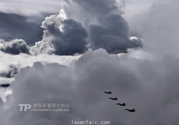 戰(zhàn)機(jī)在烏云翻滾的蒼穹中穿行。(劉應(yīng)華 攝)