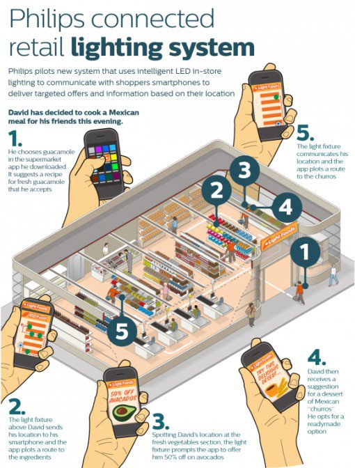 從這一點上來說,可能性是相當大的。飛利浦已經(jīng)炮制了一個演示應用,能夠幫助人們在雜亂的商店布局中四處尋找自己所需的東西;而在一路上,它也可以拋出相關的促銷推薦、同類商品、甚至完全不同的信息。