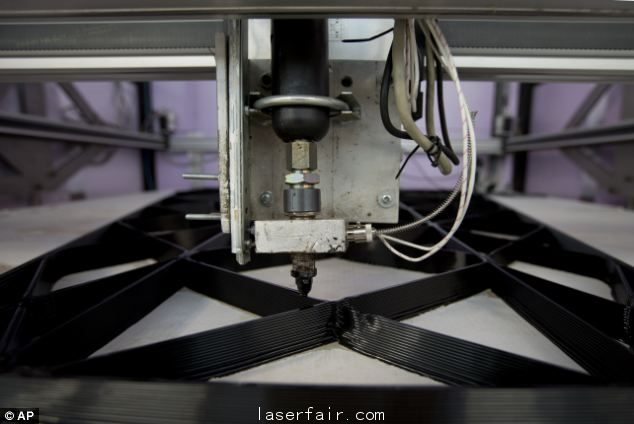他們所使用的巨型3D打印機(jī)有6米高,被稱為Kamermaker(天工社注:意為房間制造者)。這臺打印機(jī)負(fù)責(zé)打印各式房間,其墻壁和塑料家具通過開槽咬合在一起,就像超大的樂高積木。該3D打印機(jī)已經(jīng)制造出了房子的一個角落和樓梯的一部分,重達(dá)約180公斤。