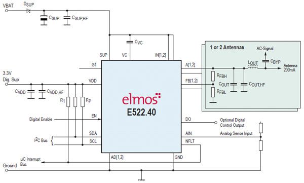 艾爾默斯公司(elmos)日前宣布推出一種緊湊型封裝的汽車級(jí)雙天線電源保護(hù)芯片。該芯片為天線系統(tǒng)提供靜電保護(hù)(ESD保護(hù))以及電源對(duì)地/電池的短路保護(hù),同時(shí)該芯片具備過熱保護(hù)的功能。通過I2C總線接口,可以非常方便的通過兩根數(shù)據(jù)線對(duì)多個(gè)不同的器件進(jìn)行尋址。該芯片采用QFN20L5封裝。