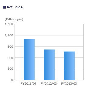 圖2,瑞薩電子2011~2013財年的凈銷售額(單位:億日元)