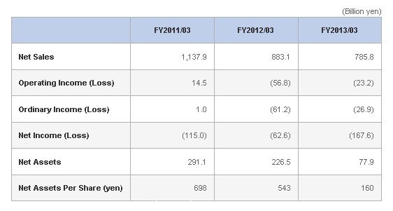 圖1,瑞薩電子2011~2013財年的財務(wù)狀況(單位:億日元)