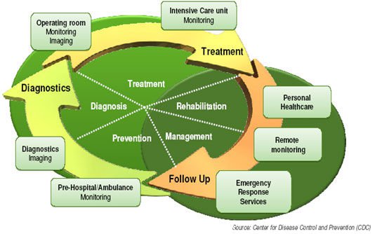 平均來說,我們的人生有99%以上是在醫(yī)院或診所外度過。因此,在醫(yī)院和臨床環(huán)境之外的醫(yī)療保健變得和在醫(yī)院內(nèi)的一樣重要。此外,逐漸增加的醫(yī)療條件、老年人口和上升的醫(yī)療保健成本構(gòu)成了推動(dòng)更好的醫(yī)療保健解決方案的因素。在改進(jìn)醫(yī)療保健和病人的生活質(zhì)量方面,無線技術(shù)發(fā)揮了很大的作用,同時(shí)降低了成本。