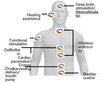對于人體植入和可進(jìn)入消化道的無線電有著共同的限制,無線電通信必須穿過機(jī)體組織進(jìn)行,而身體會(huì)顯著減弱高頻率RF信號(hào)。美國聯(lián)邦通信委員會(huì)(FCC) 已將用于植入用途(MICS和MEDS頻帶)的頻帶分配在400MHz范圍內(nèi),以便在體內(nèi)時(shí)達(dá)到最佳性能。植入的無線電還需要極低的功耗、泄漏電流和有效的喚醒機(jī)制來啟動(dòng)通訊。美高森美的植入級(jí)無線電設(shè)計(jì)專門用于此類應(yīng)用。針對植入級(jí)無線電的一些應(yīng)用如圖3所示: