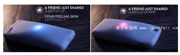 此外,The Feeling Skin還可配合專屬App一起使用,App上可清楚看到The Feeling Skin外殼與iphone本身的電量,還可掌握電量所支持各個(gè)應(yīng)用程序的使用長(zhǎng)度。最特別的是,The Feeling Skin還具有社交功能,當(dāng)朋友透過(guò)此專屬的app發(fā)訊息時(shí),外殼LED燈變會(huì)亮起以提醒用戶查看,而不同的顏色代表著不同心情,用戶也只需要單擊后蓋的按鈕,就可以與好友分享心情。目前The Feeling Skin于Kickstarter上募資,售價(jià)為49美元。