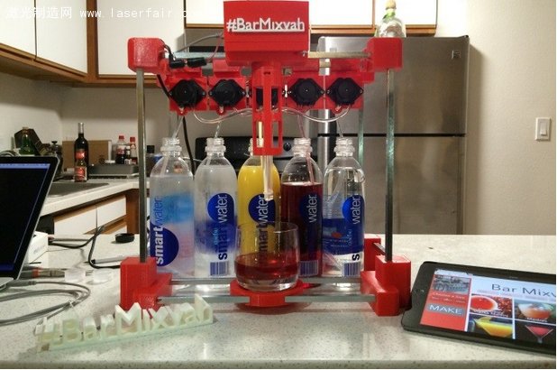 日前,蘋果公司的一位工程師余江(音譯Yu Jiang)設計并建造出了一臺酒保機器人Bar Mixvah,這臺機器人能夠根據(jù)您的要求為您調(diào)制出各種混合飲料。Bar Mixvah的所有部件均是3D打印而成。這臺機器人使用了5個蠕動泵并由5個雙極型晶體管(TIP120)來回切換,所有這些都由一片Arduino芯片控制。