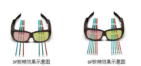 銀幕的圖像,是通過(guò)2組3P光源,暨2組紅、綠、藍(lán)光合成(R1G1B1與R2G2B2)的6原色激光放映系統(tǒng)。無(wú)需分離左右眼的循環(huán)畫(huà)面,而是同時(shí)播放兩只眼睛的3D圖像畫(huà)面。3d光效高。缺陷是色譜3d眼睛重量明顯超過(guò)偏振3d眼睛,且眼鏡購(gòu)買(mǎi)及維護(hù)成本高。