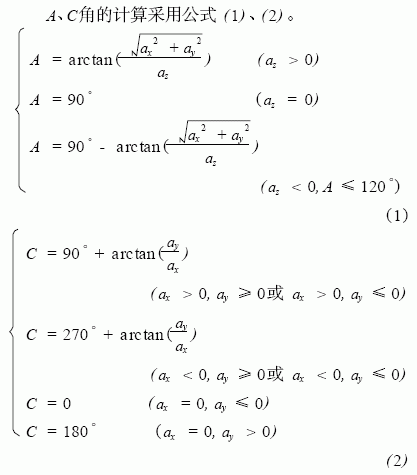 工作臺(工件)相對刀具轉(zhuǎn)動,其轉(zhuǎn)角以順時針方向?yàn)檎较?。將刀軸矢量a 繞軸順時針轉(zhuǎn)動C角到 平面上, 再將刀軸矢量繞Xc軸順時針轉(zhuǎn)動A角到與Zc坐標(biāo)方向一致,如圖2所示(這樣,轉(zhuǎn)動可以保證。這樣就完成了刀軸矢量的轉(zhuǎn)換,即刀具相對于工件的轉(zhuǎn)動或擺動。對于雙轉(zhuǎn)臺式五軸數(shù)控機(jī)床,為實(shí)現(xiàn)以上轉(zhuǎn)換,工作臺的動作為工作臺繞C回轉(zhuǎn)軸順時針轉(zhuǎn)動C角,工作臺A回轉(zhuǎn)軸順時針轉(zhuǎn)動A角。