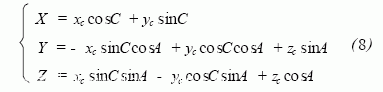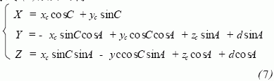 (2)刀軸矢量繞Z軸旋轉(zhuǎn)C角,變換矩陣為