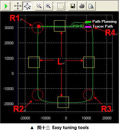 通過Softmotion的算法,新一代運(yùn)動(dòng)控制卡可根據(jù)用戶所提供的圖形數(shù)據(jù),自動(dòng)規(guī)劃出優(yōu)化圖形路徑規(guī)劃,以縮短不必要的路徑并提升切割速度與平滑度。如此一來可減少不必要的重復(fù),大大的提升產(chǎn)能。 利用Softmotion內(nèi)的前瞻規(guī)劃(LookAhead)功能,當(dāng)運(yùn)動(dòng)軌跡有較大角度的轉(zhuǎn)折時(shí),Softmotion會(huì)自動(dòng)計(jì)算并提早降速,讓機(jī)構(gòu)可以順應(yīng)平滑的速度,平順的完成軌跡的移動(dòng)。如此復(fù)雜功能的實(shí)現(xiàn),用戶僅需要輸入3個(gè)系統(tǒng)參數(shù),分別是「最大速 (Max. Velocity)」、「最大加速度 (Max. Acceleration)」以及「容許誤差量 (Tolerance)」(如圖十二)。通過Softmotion的內(nèi)部規(guī)劃,即可達(dá)成復(fù)雜圖形的軌跡運(yùn)動(dòng)。