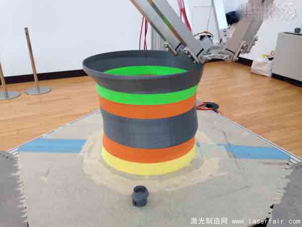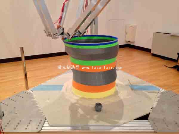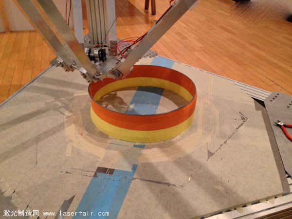 下面是這臺(tái)3D打印機(jī)的成果,可以看到,由于機(jī)器過(guò)于巨大,打印的精確度還是有問(wèn)題,正在打印的一個(gè)筒狀物有明顯的歪斜。
