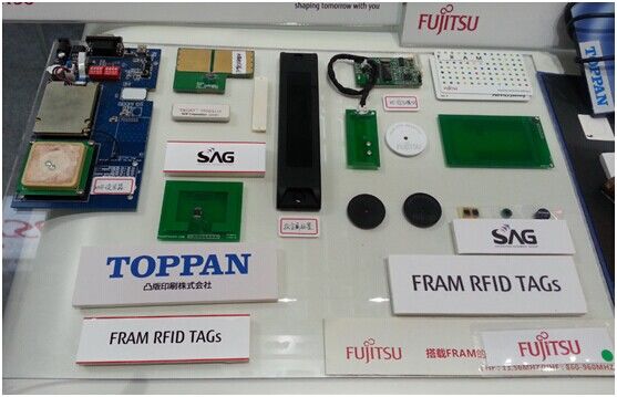 如上圖所示為富士通半導(dǎo)體展臺現(xiàn)場展示的搭載FRAM的RFID芯片,此類電子標簽具有大容量存儲(UHF容量分別為36bytes、4Kbytes;HF容量分別為256bytes 、2Kbytes、9Kbytes)、高速寫入、高耐久性(靜態(tài)功耗小于1uA)、耐放射線性、嵌入式RF(具有SPI串口,可實現(xiàn)與微處理器的連接)的特點。
