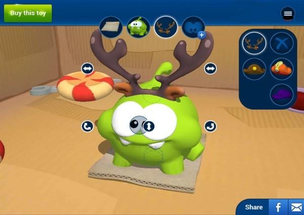Toyze的程序界面里會包括玩家的最心愛的游戲中的小動物和英雄,比如Zeptolab的《割繩子》游戲中愛吃糖的小怪物Om Nom。