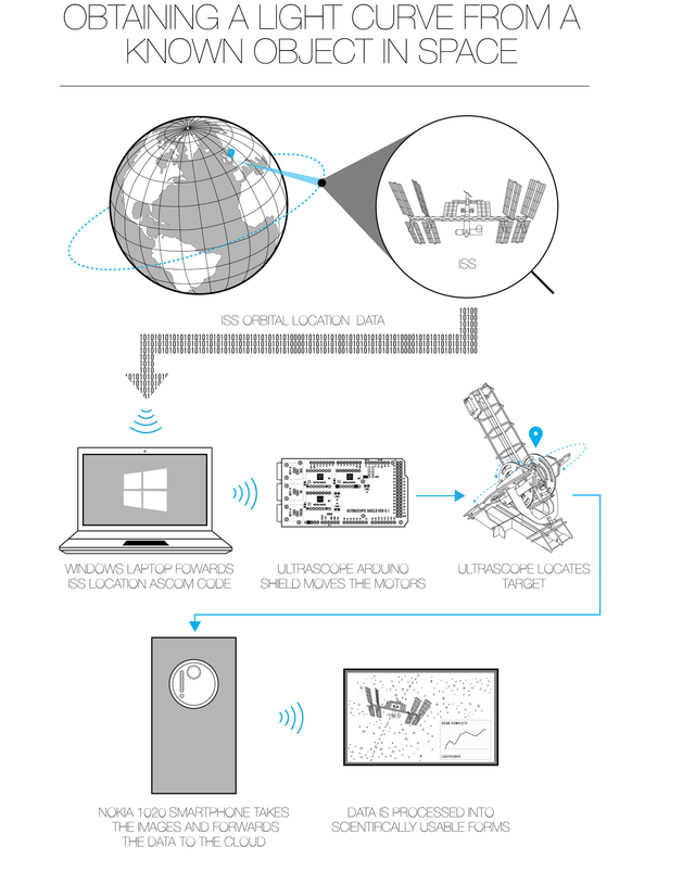 UltraScope利用了Lumia 1020手機CCD圖像傳感器,這個CCD傳感器像素可達4100萬像素。之前,天文望遠鏡的制作成本較高,這次采用較低成本的3D打印機、激光切割機結(jié)合為控制平臺,UltraScope制作成本大幅度降低。