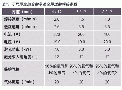 船舶制造中的激光-GMA復(fù)合焊在船舶制造中,球扁鋼型材經(jīng)常用于增加組件和截面零件的剛度,平均加強(qiáng)筋厚度介于4.0和8.0mm之間。到目前為止, 最廣泛使用的焊接工藝是埋弧焊(SAW)。然而,需要克服的問(wèn)題就是大線能量和低或中等的焊接速度,這會(huì)引起翹曲和扭曲,從而需要大量的返工,例如火焰矯形。在這方面的最佳解決方案是使用激光光束,但是制備及預(yù)組裝所產(chǎn)生的公差會(huì)影響到激光的單獨(dú)應(yīng)用。激光-GMA復(fù)合焊接可以解決這些問(wèn)題。德國(guó)Papenburg的Meyer Werft船廠安裝了CO2 激光-GMA復(fù)合焊接系統(tǒng),并使用了很多年,這足以證明它可以在工業(yè)中得到成功應(yīng)用。對(duì)于這類制造行業(yè),通常用T形接頭角焊縫來(lái)焊接加強(qiáng)筋。下一部分描述了用固態(tài)激光對(duì)上述加強(qiáng)筋型材進(jìn)行單邊全焊透。