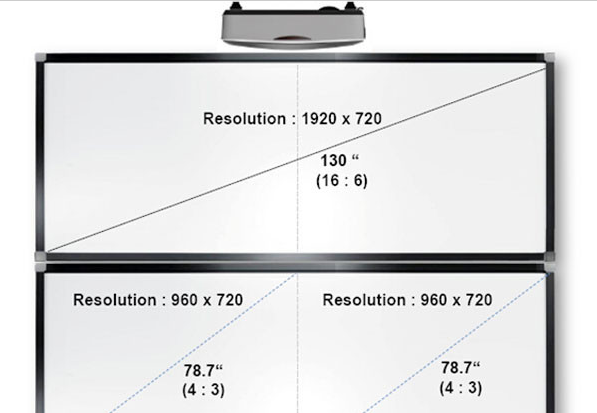 眾所周知,國內(nèi)教室使用的黑板一般都是寬度十分明顯的長方形形狀,以便為教師提供更寬闊的空間進行書寫和教學,以往常規(guī)投影機投射出來的畫面僅能占據(jù)黑板一半面積,空間十分有限,導致原本需要一頁顯示的內(nèi)容只能被分割成兩頁或者更多頁畫面顯示。