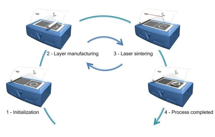 一般而言,激光快速成型需要用高功率的激光照射試件表面,融化金屬粉末,形成液態(tài)的熔池,然后移動激光束,熔化前方的粉末而讓后方的金屬液冷卻凝固。周邊需要有送粉裝臵、惰性氣體保護(hù)、噴頭控制等來配套。