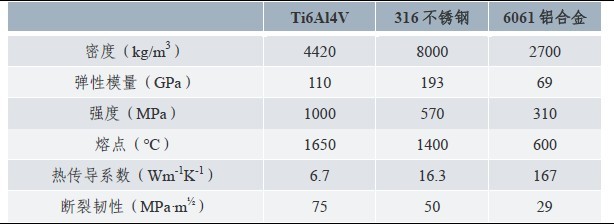 圖表3:鈦合金、不銹鋼和鋁合金的性能對比