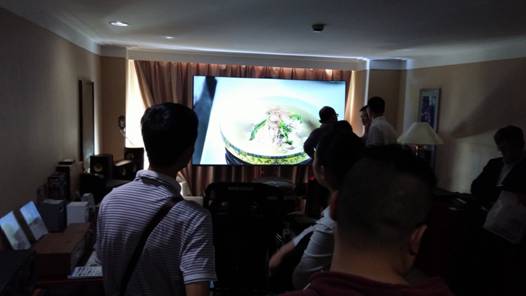 INESA智能激光電視不同于傳統(tǒng)投影機(jī),免除了預(yù)布線的繁瑣,纖薄屏幕輕松上墻。其顯示核心部分使用了德州儀器金高清DMD芯片,物理分辨率為1920×1080,在模塊化固態(tài)激光光源的基礎(chǔ)上,帶來了220Nit的顯示亮度以上及高對(duì)比度。