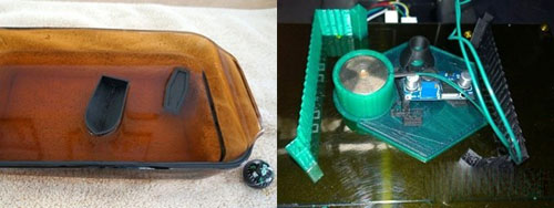 上圖為利用磁性線材打印的指南針,這款線材基本磁性數(shù)據(jù)存儲功能(左)利用可導(dǎo)電材料制作導(dǎo)電線路(右)