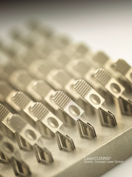 ConceptLaser研發(fā)中心還開發(fā)了兩種經(jīng)過認(rèn)真的兩種新材料,并首次在法蘭克福進(jìn)行展示。第一種是針對高溫應(yīng)用的Inconel625。這種材料主要用于渦輪機(jī)結(jié)構(gòu),其中的部件經(jīng)常要在高達(dá)1000℃的高熱應(yīng)力環(huán)境中應(yīng)用。第二材料是不銹鋼17-4PH。這種材料可被硬化,從而制成高度耐磨損、耐腐蝕的部件。這些屬性對于醫(yī)療器械方面的應(yīng)用特別有吸引力。17-4PH不銹鋼的認(rèn)證適用于MLABcusingR、M1cusing和M2cusing系列。