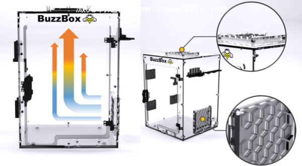 至于BuzzBox的其余功能,無(wú)源空氣除菌系統(tǒng)允許能夠捕獲打印過程中產(chǎn)生的熱空氣,并通過一個(gè)碳過濾器釋放,同時(shí)仍保持高品質(zhì)3D打印過程中所需的適當(dāng)溫度。