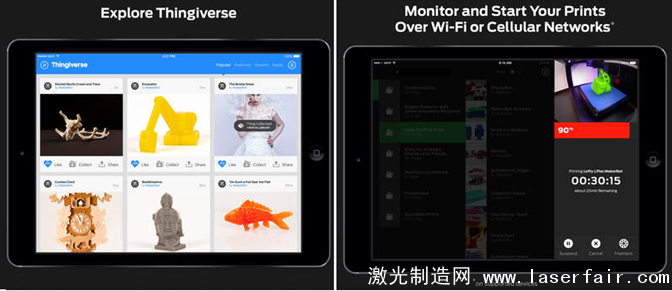 此次更新主要集中在用戶通過(guò)MakerBot的云服務(wù)隨時(shí)控制自己的MakerBot 3D打印機(jī)的能力。任何人只要擁有3G或4G手機(jī)可以在任何地方控制和監(jiān)視他們的3D打印任務(wù)。打印期間必須要去辦公室?沒(méi)問(wèn)題,您可以安穩(wěn)地在辦公室里坐下來(lái),監(jiān)控您在家里的打印機(jī)的運(yùn)行,甚至啟動(dòng)一個(gè)新的打印任務(wù)。